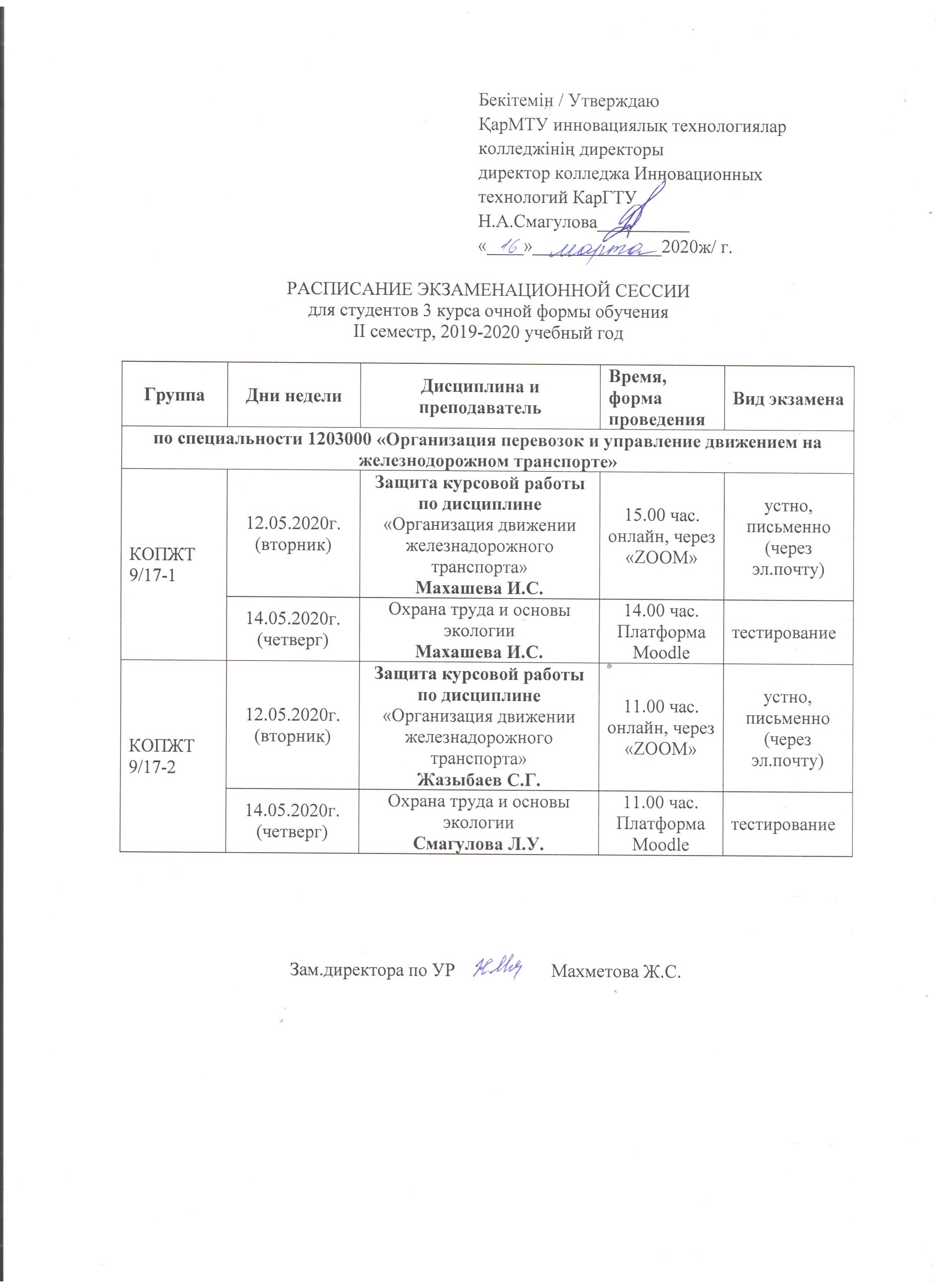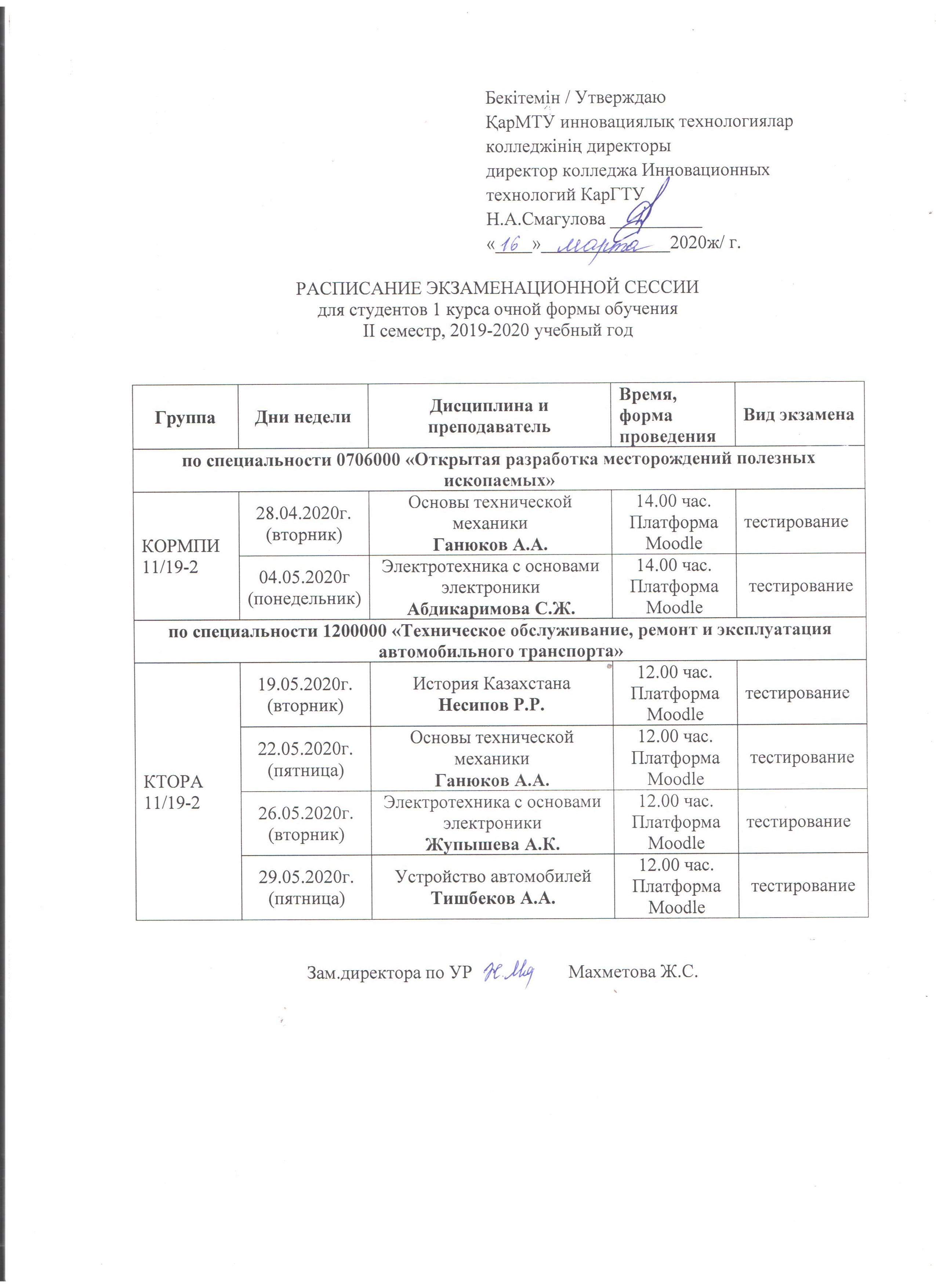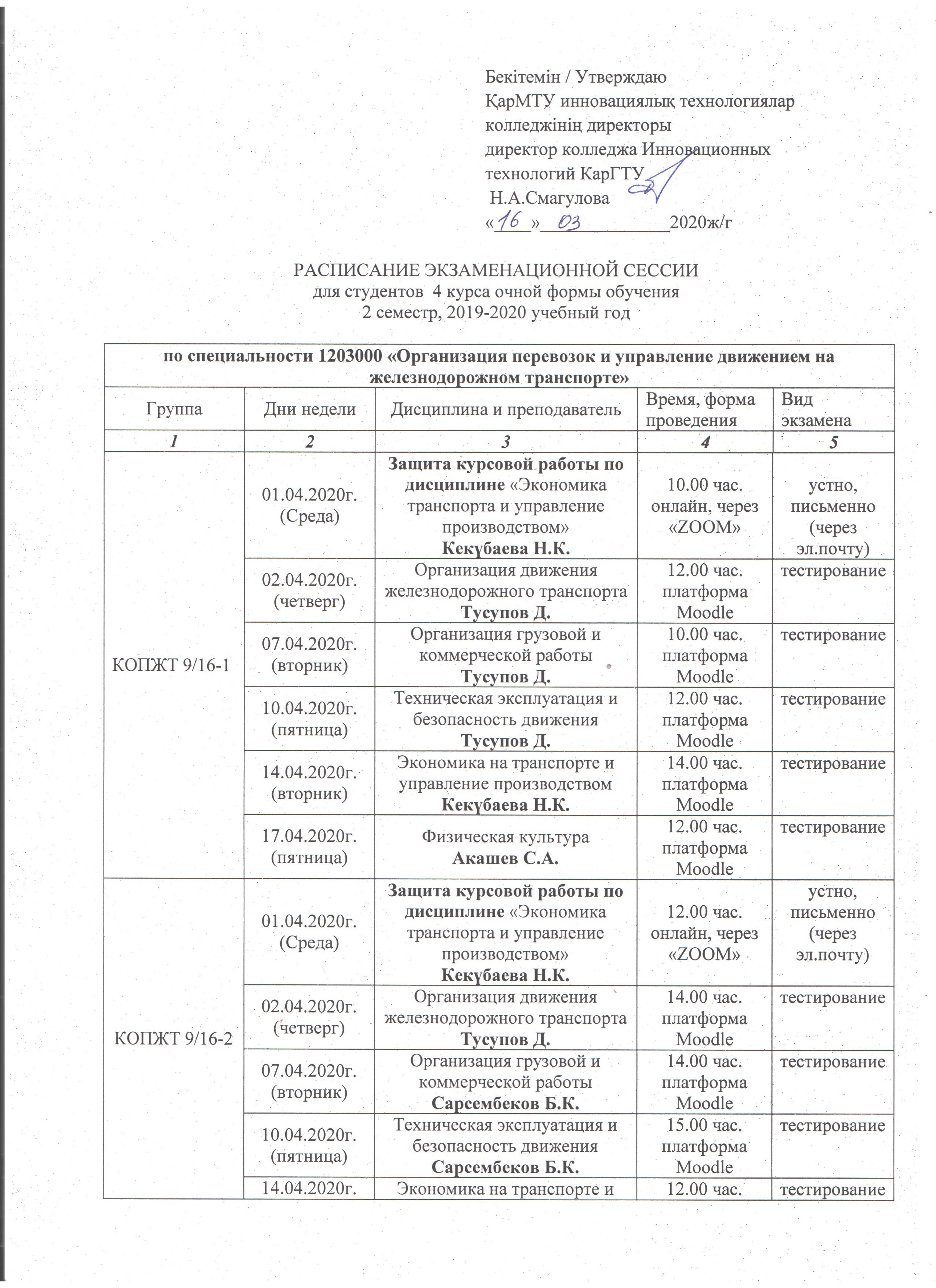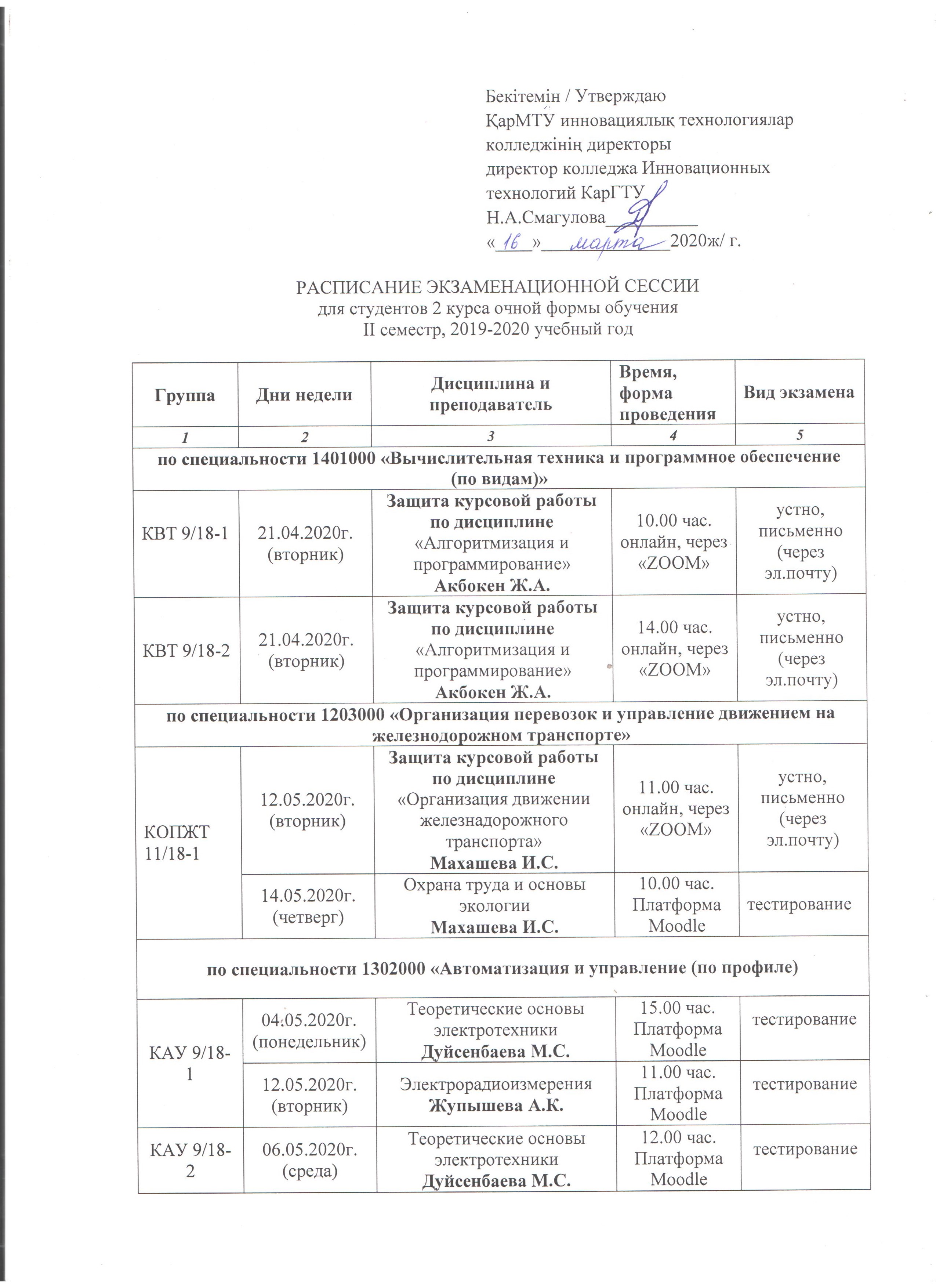 Расписание экзаменационной сессии КИТ КарТУ 2019-2020 учебный год