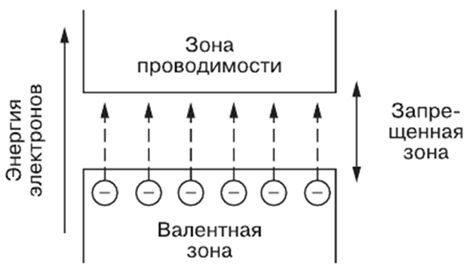У проводников запрещенная зона отсутствует: валентная зона и зона проводимости частично перекрываются, что обеспечивает хорошую электропроводность металлов.