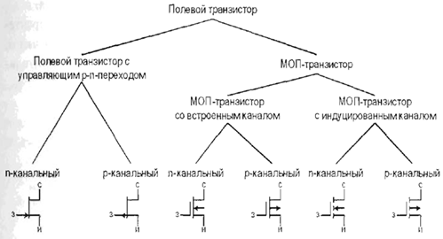 Рисунок 2.11 - Разновидности полевых транзисторов