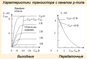10. Нарисуйте и объясните управляющие и выходные характеристики полевого транзистора.