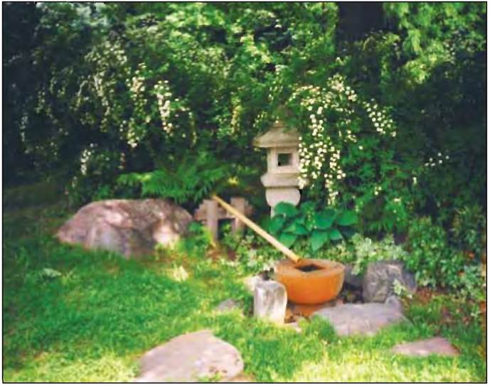 Использование ландшафтных компонентов. Разбирая более подробно роль ландшафтных компонентов в проектировании японского пейзажного сада, следует еще раз напомнить, что его назначением является создание миниатюрной модели гористой местности с водным каскадом, небольшим озером, имеющим островок, с мостиками, оригинально размещенными камнями и декоративными каменными фонарями. Освоение пространства происходит в гармонии трех стихий – камня, воды и растительности. Камни, растения, вода являются главными составляющими, каждая из которых несет определенную смысловую нагрузку. Более того, распределение всех элементов сада (водопадов, камней, растений, мостиков и др.) подчиняется определенным пространственным законам. Так, в частности, две линии, соединяющие одинаковые элементы, не должны быть параллельными; два элемента не должны быть одного размера и т. д. (Голосова Е. В., 2002).