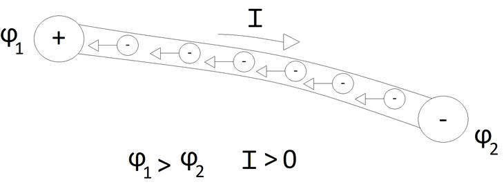 Электрондар оң зарядталған денеге көшкен сайын, оның заряды мен потенциалы φ1 азайады, екінші дененің потенциалы φ2 өседі. Екі потенциалы бірдей болып қалғанда (φ1 = φ2), кернеу жойлады да ток болмай қалады (U = 0, І = 0).