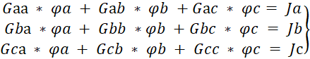 Gаb = Gbа = - g1, Gаc = Gcа = - g6, Gbc = Gcb = - g3 – түйін аралық өткізгіштер деп аталады, яғни екі түйінді қосатын тармақттың өткізгіштігі, олар әрқашанда теріс таңбасымен жазылады;