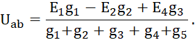 I1 = (E1 - Uab) g1, I2 = (- E2 - Uab) g2, I3 = - Uab g3.