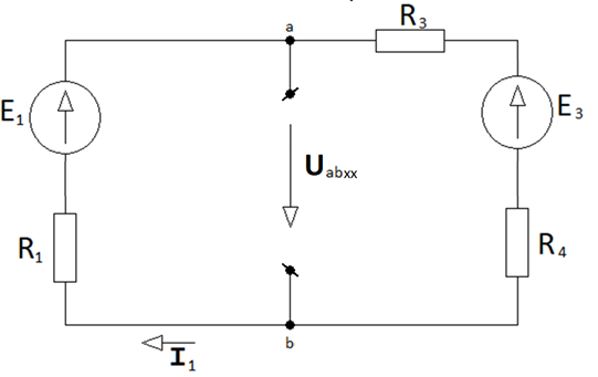 2. Таңдалған тармақты тізбектен алып тастап, тізбектің қалған бөлігі үшін екіполюстігің қысқыштарындағы Uab xx кернеуін анықтаңыз.