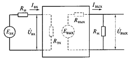 В общем виде усилитель может быть представлен в виде четырехполюсника (рисунок 3.8, б), на вход которого подан сигнал от внешнего источника с Евх и внутренним сопротивлением Rи, а к выходу подключена внешняя нагрузка Rн.