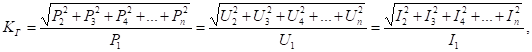 Коэффициент гармоник представляет собой корень квадратный из отношения мощностей всех высших гармоник выходного сигнала, появляющихся в результате нелинейных искажений, к мощности первой гармоники: