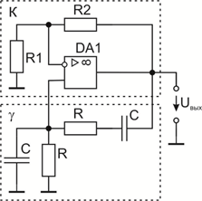 Большое входное и малое выходное сопротивления ОУ позволяют осуществить режим практически идеального согласования фазирующей цепи с усилительным звеном.