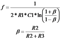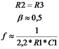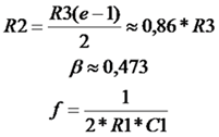 В случае равенства сопротивлений резисторов в цепи ПОС R2 и R3 соотношения будут выглядеть следующим образом