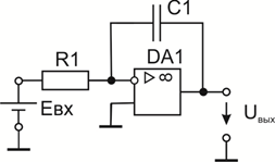 где UВЫХ; ЕВХ , (В); R1, (Ом); С1, (фарады); t, (сек).