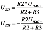 Пороговые уровни триггера Шмитта при опорном напряжении равном нулю (UОП = 0 В) определяются следующими выражениями: